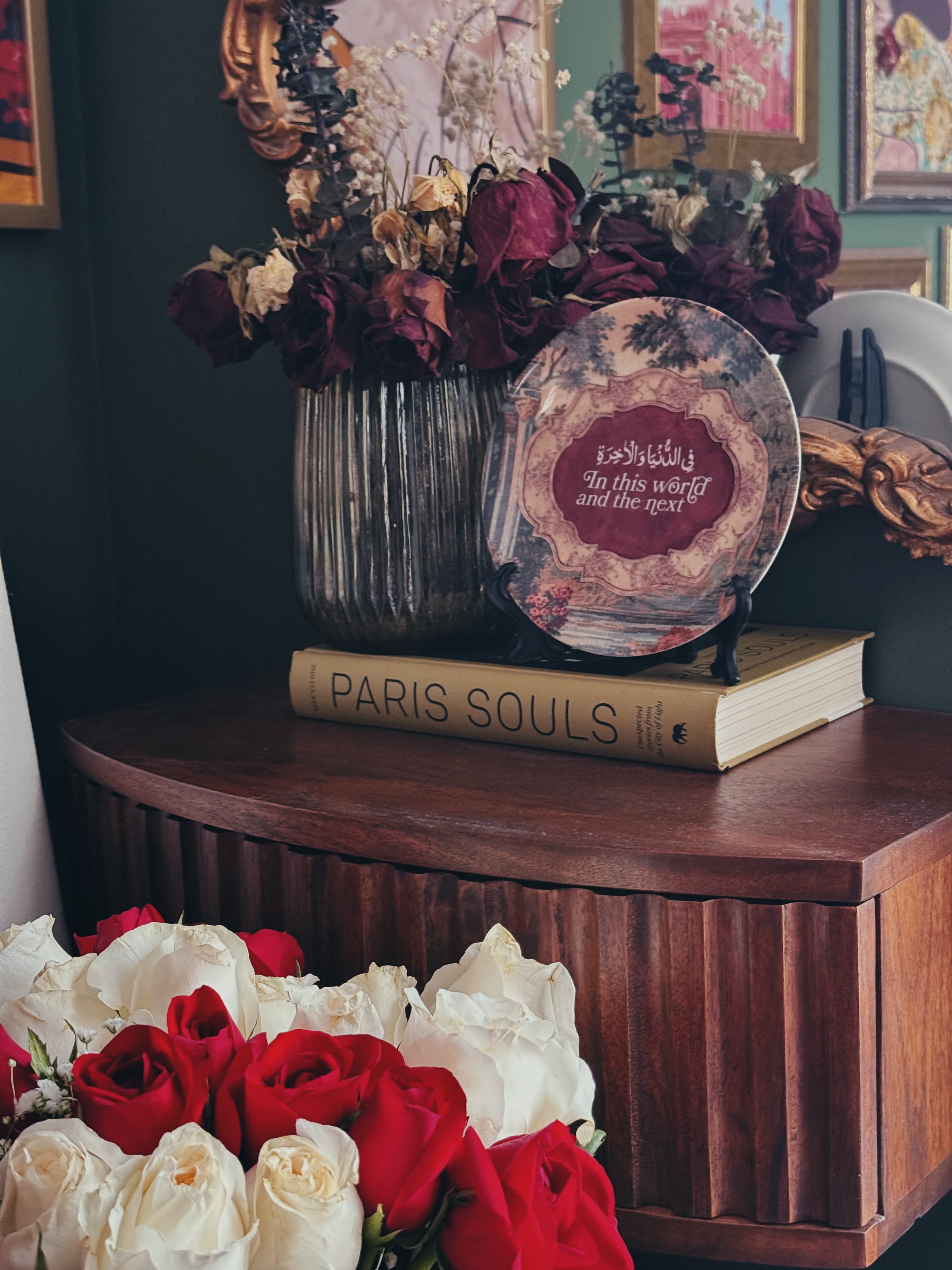 Clay and Rose captures a quiet moment suspended in longing: the softness of jasmine, the warmth of memory, and the nearness of love that lingers without touch. The composition weaves together textures of silk, pearls, and scent — an ode to what it means to feel deeply, yet silently.